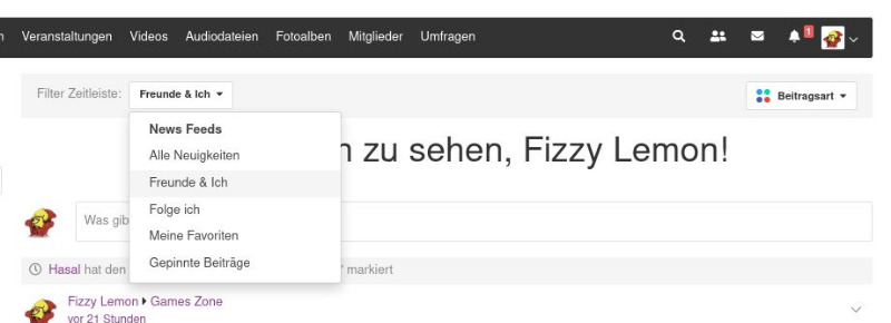 "Beitragsart" und sucht sich eine oder mehrere Optionen aus, die dann den Stream filtern und nur noch das darstellen, was man auch wirklich sehen mag.