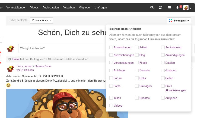 Wenn dann doch noch zu viel sein sollte, kann man den Stream ebenfalls nach bestimmten Beitragsarten filtern. Dazu klickt man auf die Schaltfläche