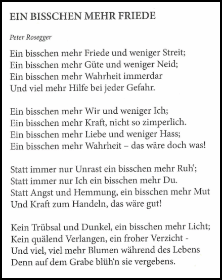 Peter Rosegger ~ Ein bisschen mehr Frieden
