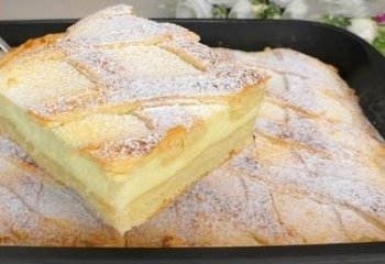 Dann den zweiten Stück vom Teig ausrollen und vorsichtig auf den Pudding legen.Nun den Kuchen etwa 50 min bis 1 Stunde im vorgeheizten Backofen bei 185°C Ober-/Unterhitze backen.Noch vor dem Servieren mit dem Puderzucker bestäuben.