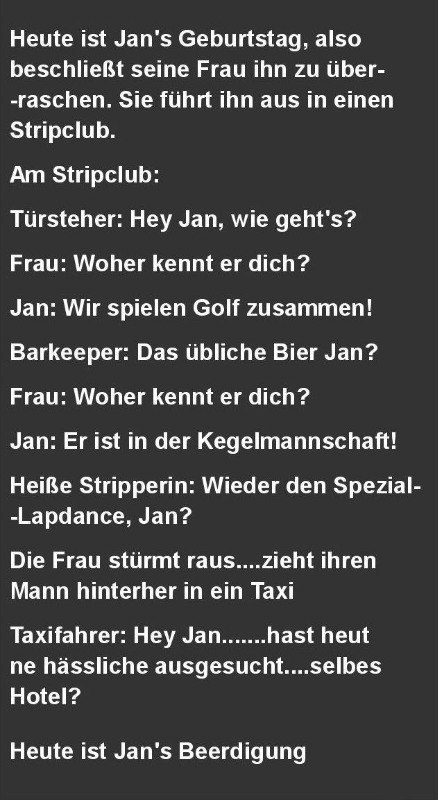 Der ältere Graf geht zur Toilette und wird von seinem Diener James pflichtbewusst begleitet. Am Urinal angekommen, sagt der Graf: "James?"