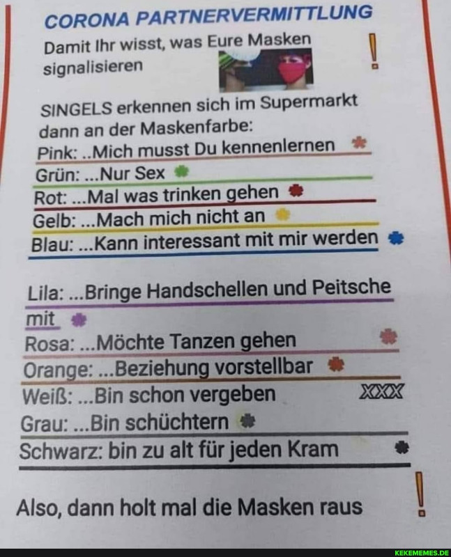 Coronamasken-Partnervermittlung